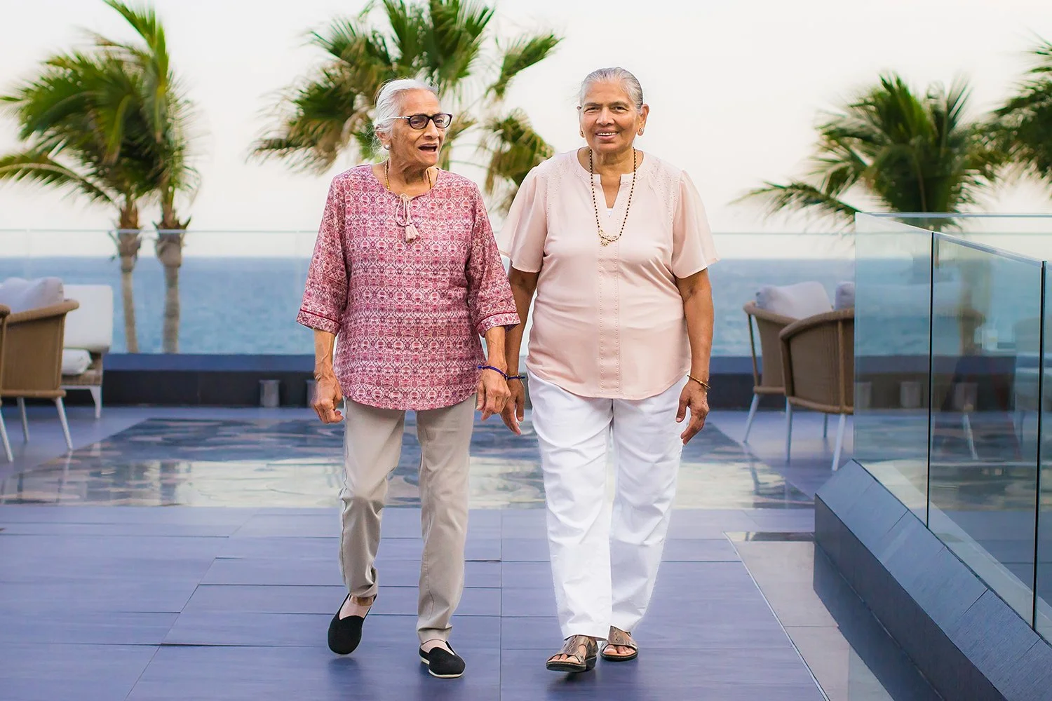 A pale peach chiffon dress catching the wind will create a soft blur of color in your photos. Linen pants in warm sand tones ripple just slightly with the ocean breeze.